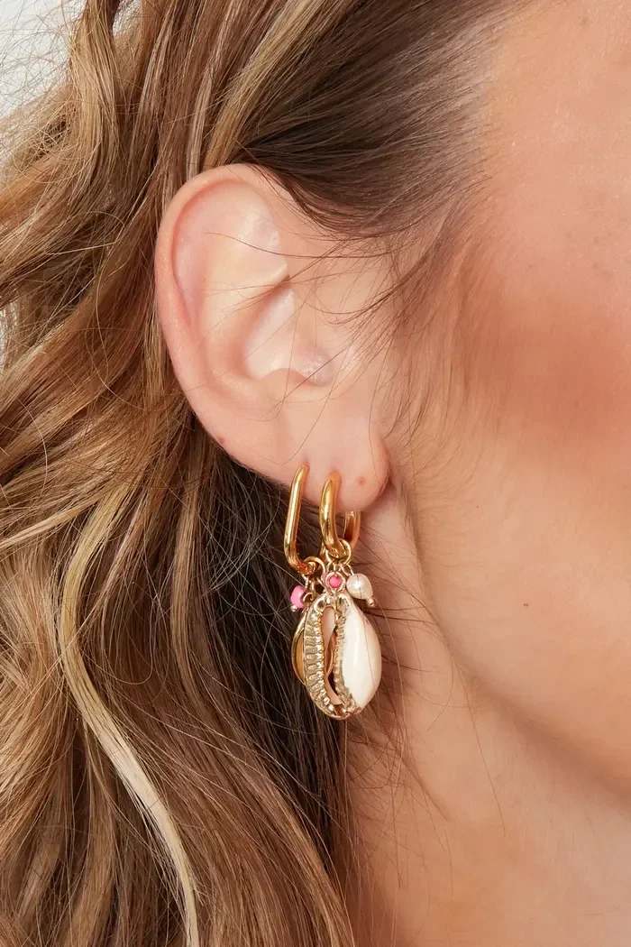 Hoe schattig is dit ronde paar gouden oorbellen met een bedel in de vorm van een grote zeeschelp en een kraal en parel! Superleuk te combineren met meerdere gouden oorbellen voor een toffe ear party! Ook perfect voor aankomend seizoen! De oorbellen zijn gemaakt van Stainless steel in combinatie met parels en glaskralen! De oorbellen hebben een afmeting van 4 cm!