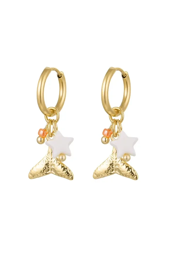 Wauw! Hoe tof zijn deze statement oorbellen met leuke bedeltjes, waaronder een sterretje en kraaltjes! Superleuk te dragen tijdens een tof festival of heerlijk avondje terrassen. Wij zijn helemaal verliefd en combineren deze oorbellen graag met meerdere sieraden met witte details! Ook leuk om deze oorbellen te combineren met meerdere kleurrijke accessoires. De oorbellen zijn gemaakt van Stainless steel in combinatie met acryl en glaskralen en hebben een afmeting van 3,2 cm. Verkrijgbaar in de kleuren goud en zilver. leuk om deze oorbellen te combineren met meerdere kleurrijke accessoires. De oorbellen zijn gemaakt van Stainless steel in combinatie met acryl en glaskralen en hebben een afmeting van 3,2 cm.